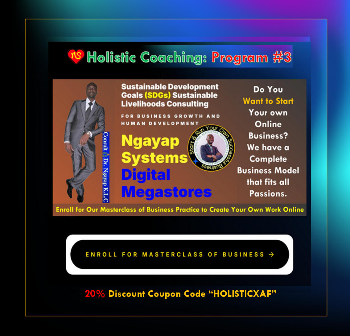 Holistic Coaching begins with addressing ones overall wellness because without good health and well-being, no other level of success can be attainable for any individual. At Ngayap Systems, we approach health and wellness through naturopathy medicine using the ultimate breakthrough technology on stem cell dietary solutions by accredited Faforlife company.Ready to Transform Your Life? Let’s Get Started!